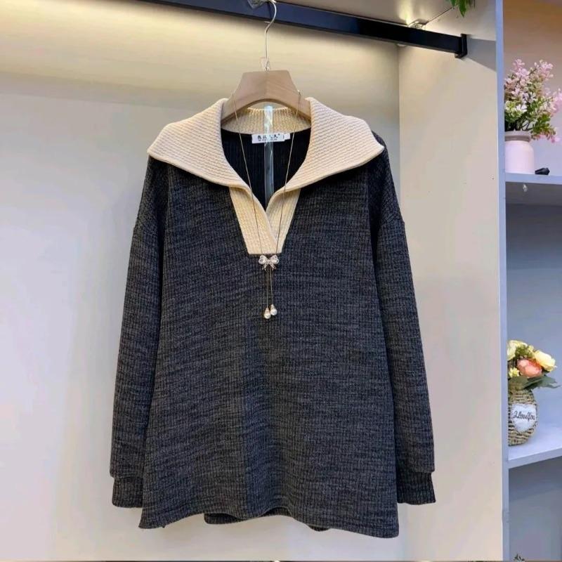Sweater for Women Winter Oversize V Neck Thickened Pullover Warm Knitted Stretchy Long Sleeve Oversize Jumper Sweater Tops