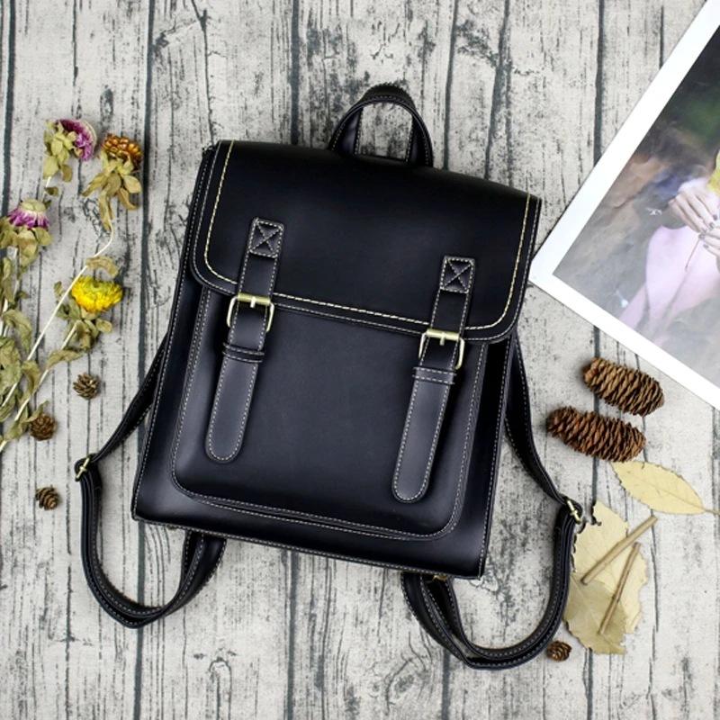New Fashion Trend PU Leather Double Backpack Casual Retro Backpack Shaped Student Backpack Women's Backpack