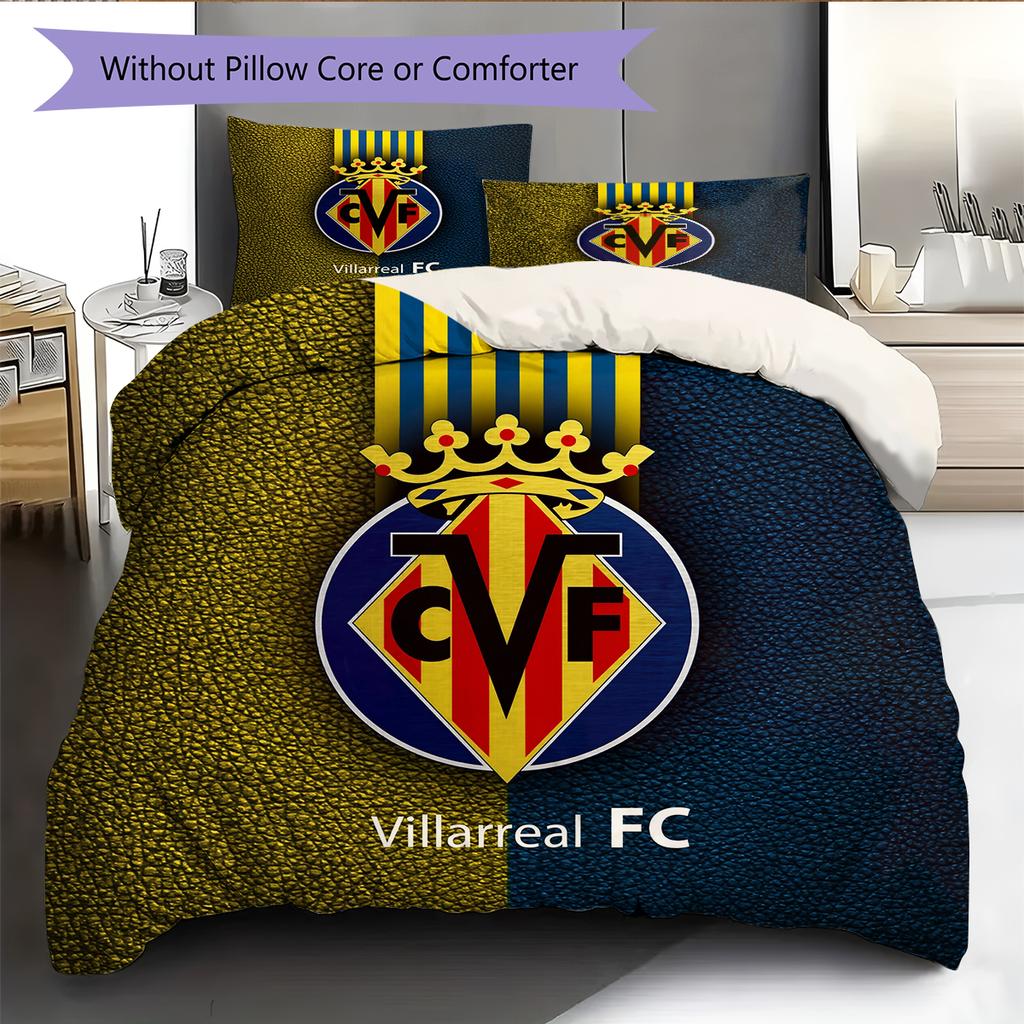 Villarreal CF Pattern Bedding Home Decoration Birthday Gift (1 * duvet cover + 2 * pillowcase, without core)