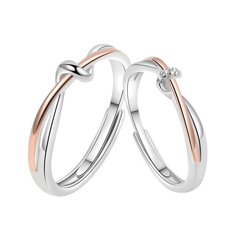 Two-Tone Twin Knot Couple Rings: Stylish Open Rings for Men & Women - Luxury Valentine's Day Gift