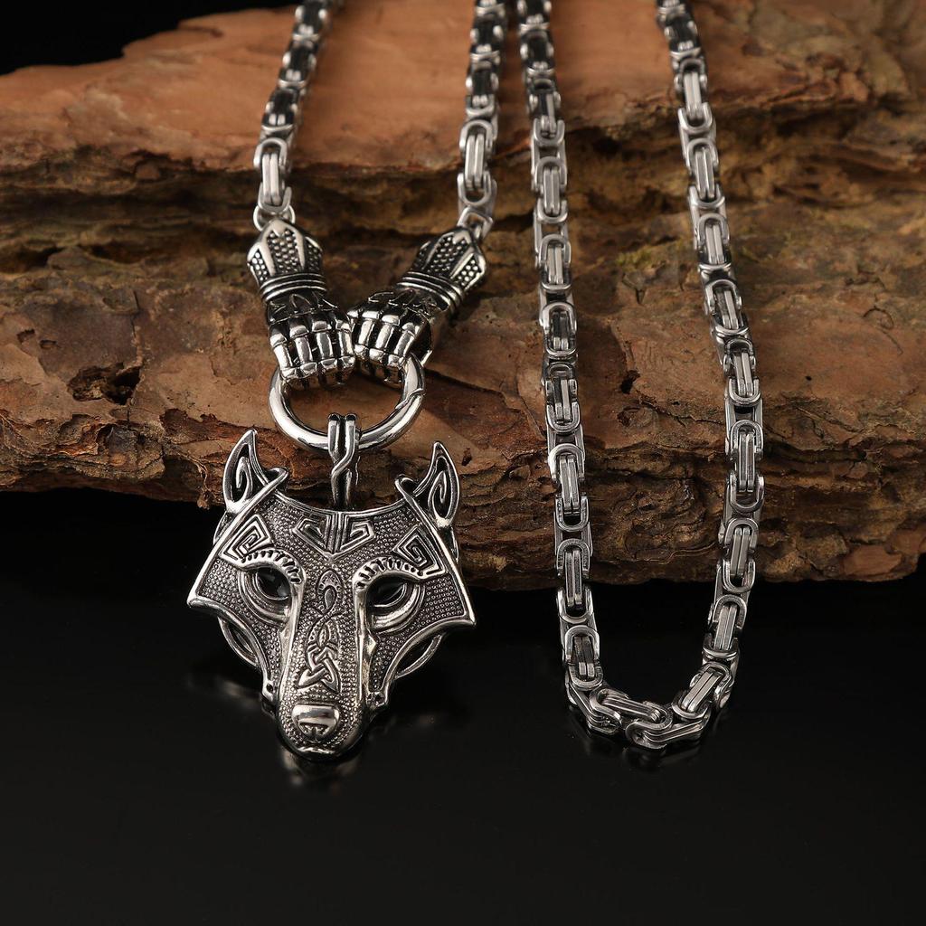 Ayı Pençesi ve Kurt Yüzü Tasarımlı Viking Savaşçısı Kolye Ucu