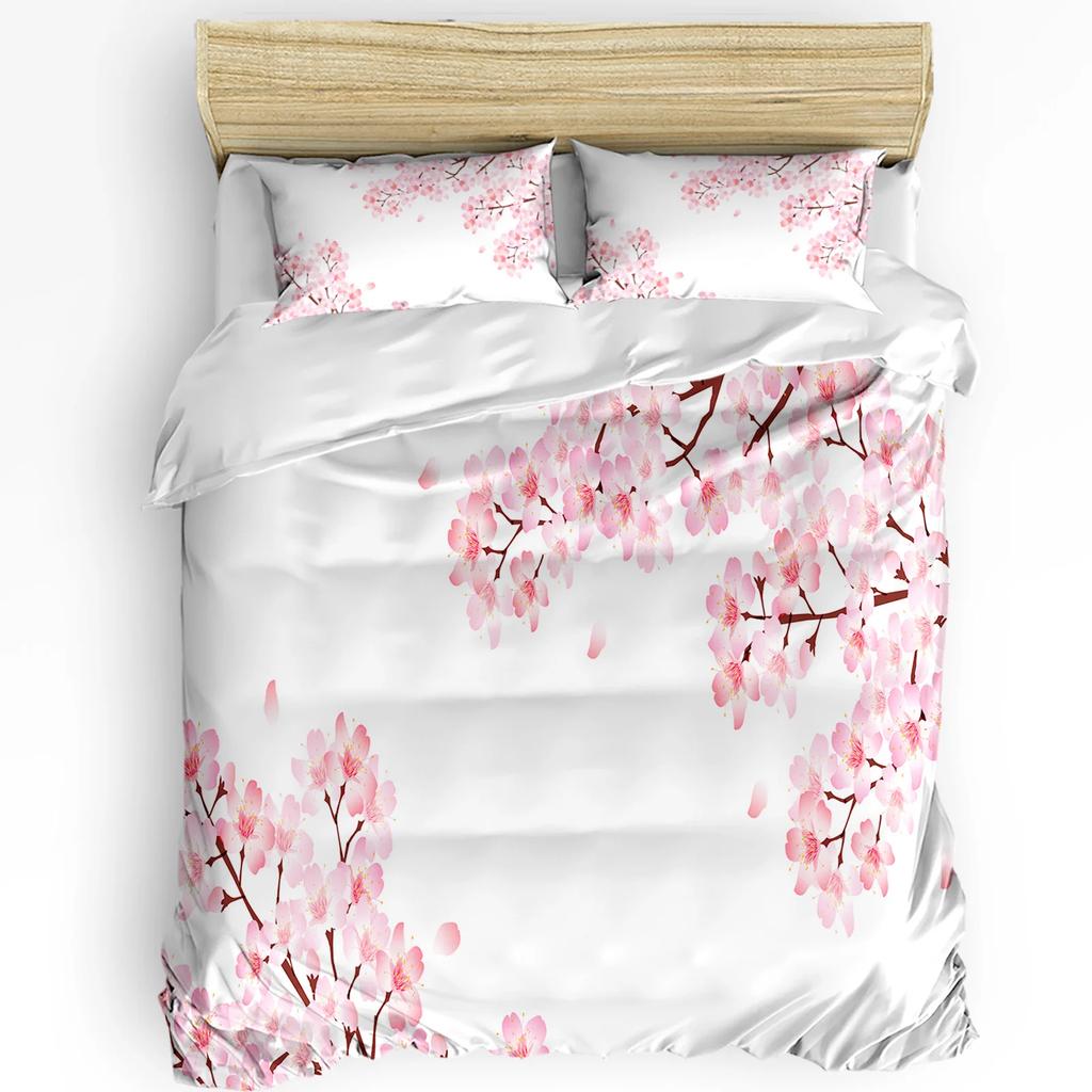3pcs Bedding Set Cherry Blossoms Tree Branches Pink White Duvet Cover Pillow Case Boy Kid Teen Girl Bedding Covers Set