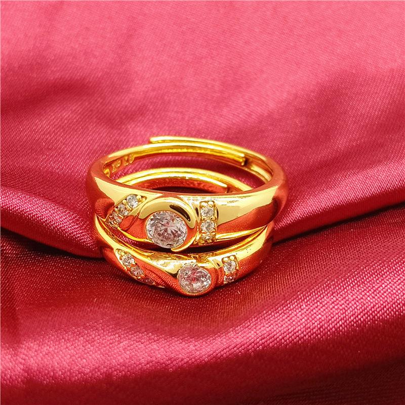 Vietnamese Sand-Gold Gilded Brass Heart-Shaped Couple Ring Set with Diamonds - Qixi Valentine's Gift
