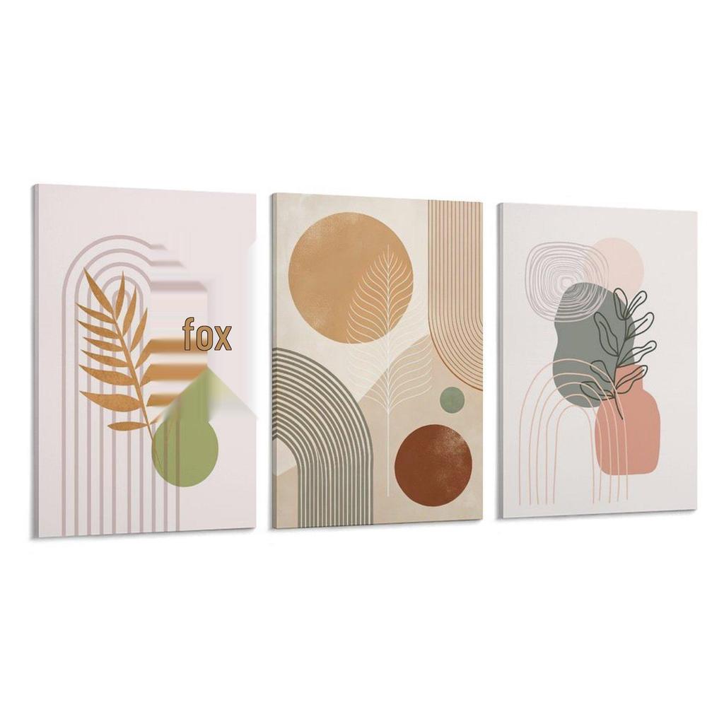 Bohem Yeşil Bitki Duvar Sanatı: Oturma Odası ve Restoran için Vintage Üç Panelli Geometrik Dekor