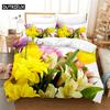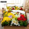 Beautiful Flowers Queen Bedding Set Duvet Cover Kids Bedroom Bed Set Comforter Cover Set King Size Duvet Cover Set Bedding Sets