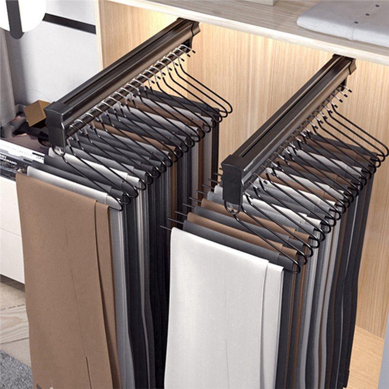Top Mount Adjustable Wardrobe Clothing Rail Heavy Duty Pull-Out Closet Rod Wardrobe Hanger Rack Bar Ball Slide