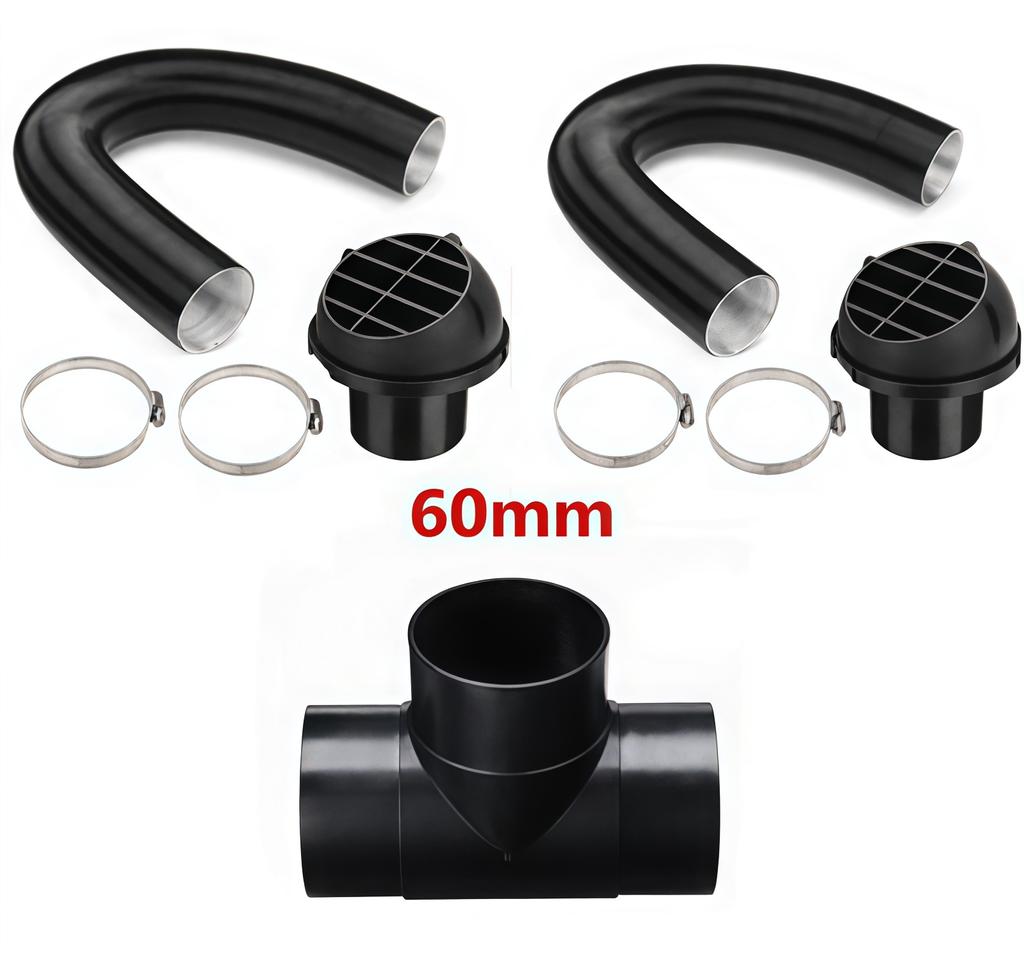 Vehicle Heating System Air Outlet Deflector 60mm with Two Flexible Ducts and T Tee Connector for Stationary Use