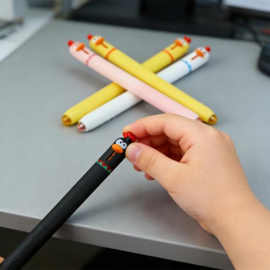 Its unique three-dimensional chicken head design adds a playful touch with vibrant colors and contrasting textures, making it a charming desktop accessory. Crafted from durable hard plastic, this pen withstands daily bumps and falls while maintaining its sleek appearance. Available in multiple lively colors such as yellow, pink, and white, it serves as both a practical writing tool and a delightful gift option.