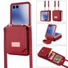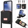 For Samsung Galaxy Z Flip7 5G Case Card Bag Kickstand PU Leather PC Phone Cover with Strap