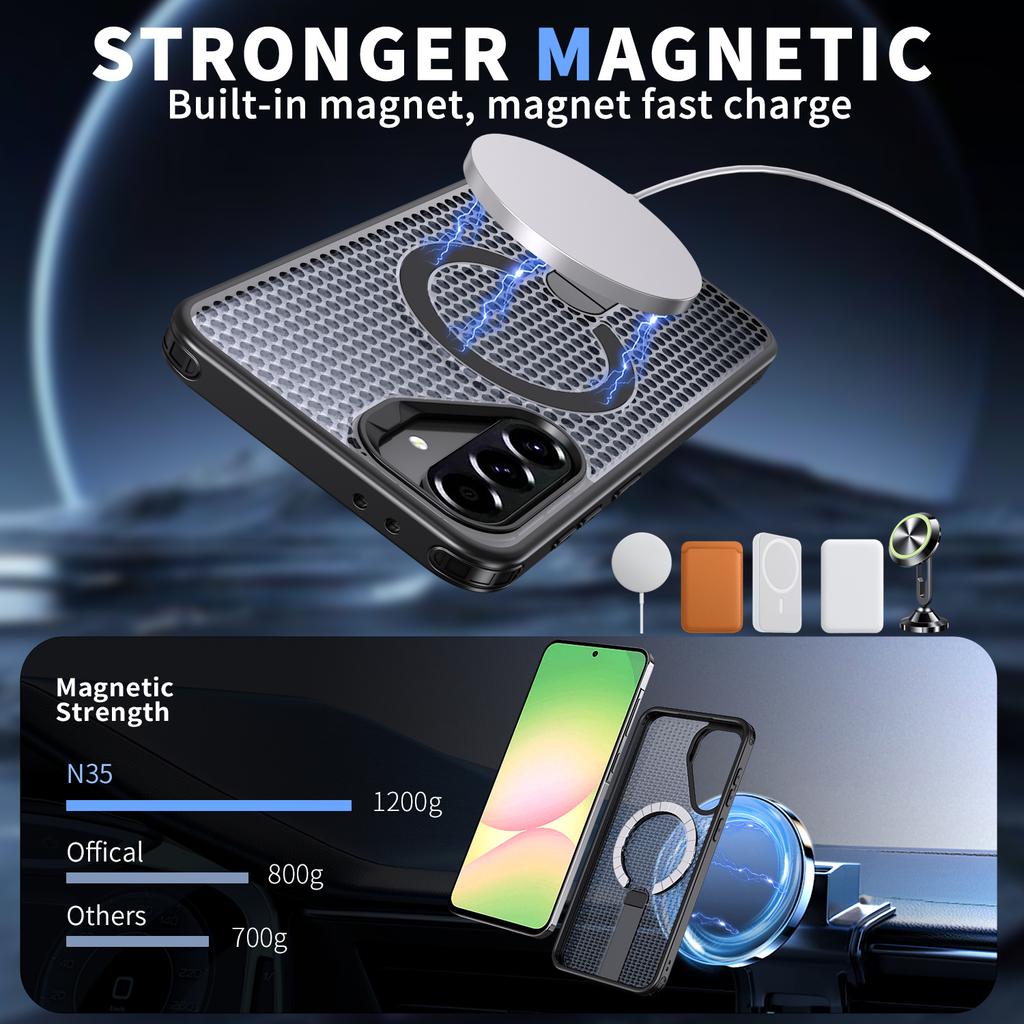 For Samsung Galaxy A36 5G Magnetic Case Kickstand Grid Texture TPU PC Phone Back Cover