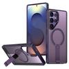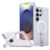 For Samsung Galaxy S25 Ultra Magnetic Case Kickstand Grid Texture TPU PC Phone Back Cover