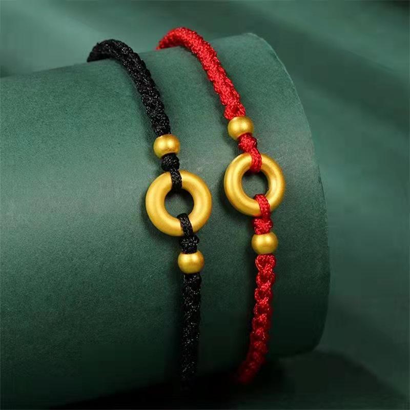 Gold-Plated Concentric Circle Dragon & Phoenix Couple Bracelet Necklace