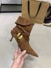 Two wear pointed suede short boots women's high heel heightening pleated pile boots western cowboy boots