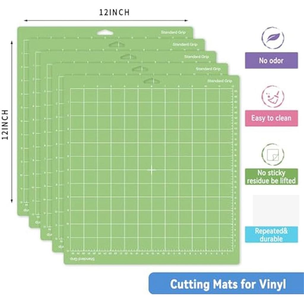 5Pcs Cutting Mats for Cricut-12x12Inch Green Standard Grip Cutting Mats for Cricut Explore Air 2/ Maker 2/3 Accessories