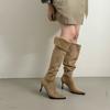 New products in the year, two-wear Korean version of pointed suede folding stiletto over the knee boots, versatile side zipper boots