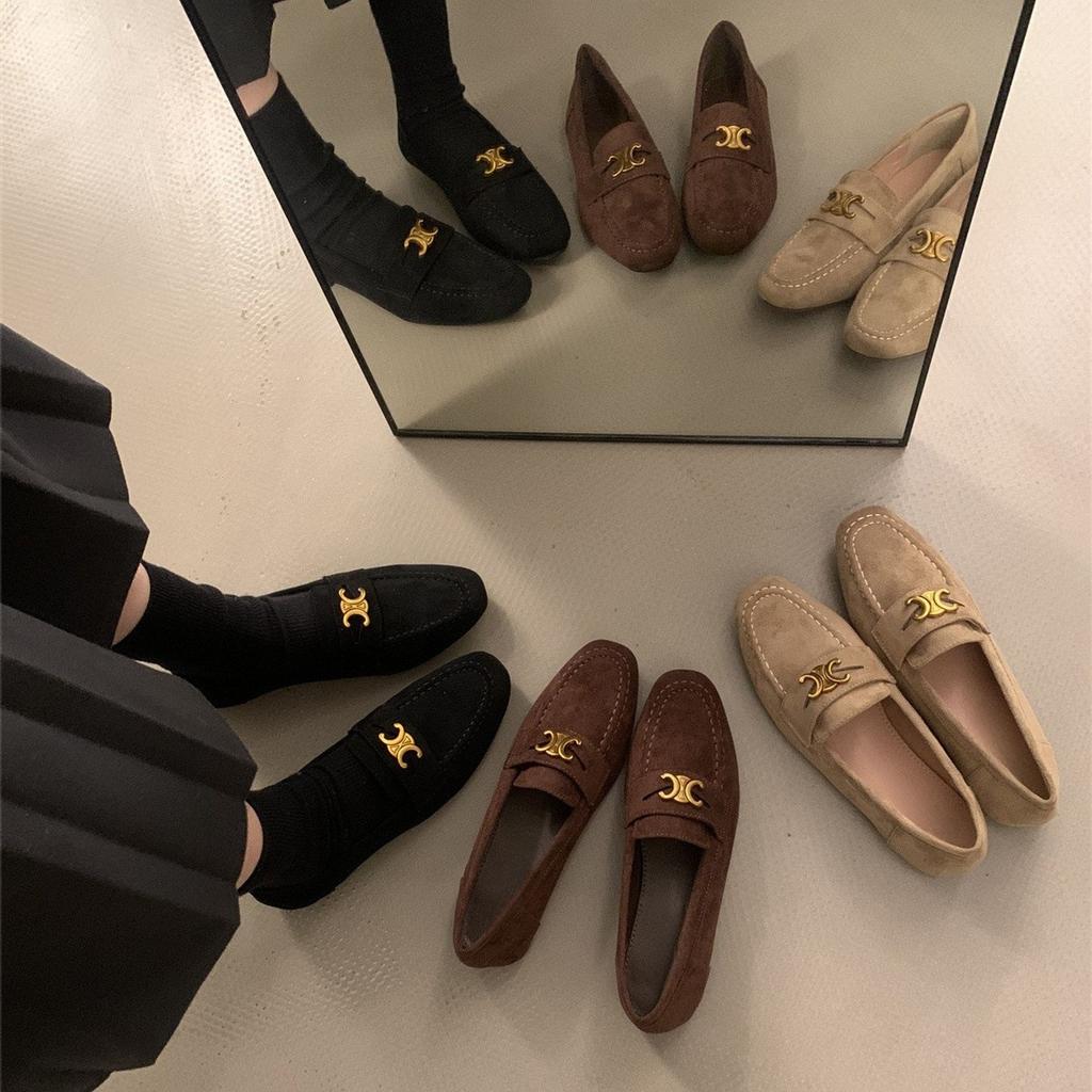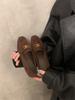 British style round head simple retro suede small leather shoes flat bottom one pedal outside wear versatile commuter shoes