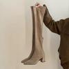 Pointed high-heeled knee boots New thick-heeled elastic thin boots Skinny boots