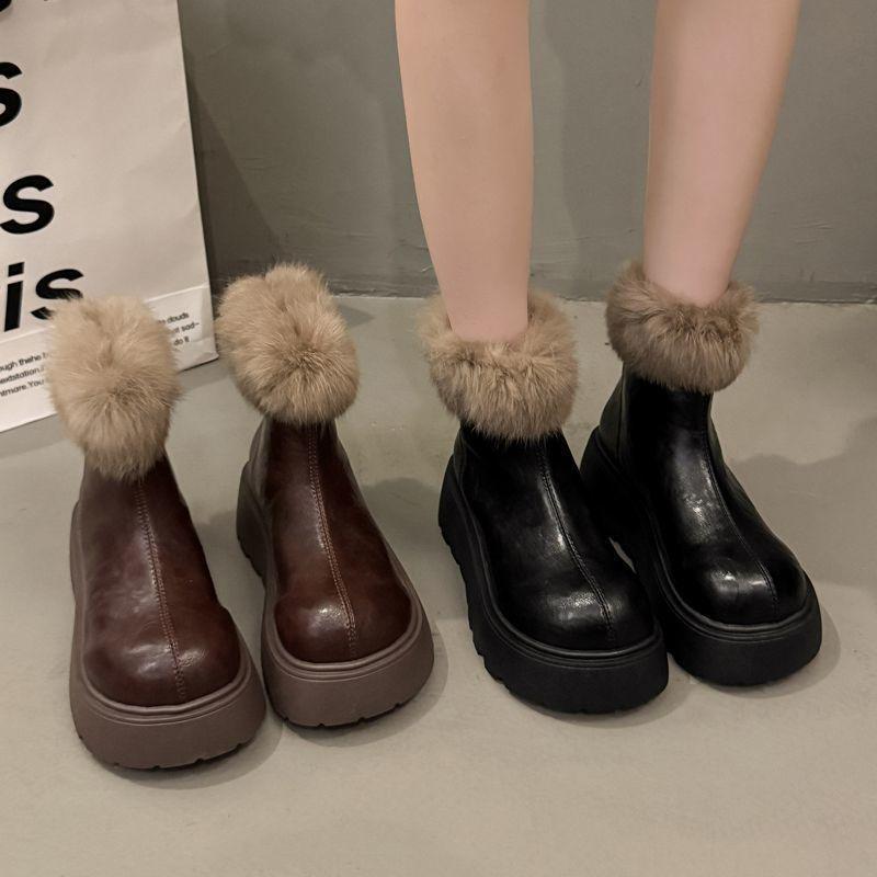 Niche design sense round head winter small short boots heightened thin boots thick bottom year hair thin