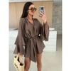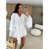 Kadın Modası Yaz İlkbahar Düz Renk Baskı Uzun Kollu V Yaka Günlük Elbiseler