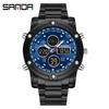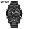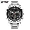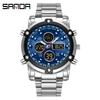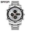 Sanda Dual Movement 5ATM Waterproof Multifunctional Steel Band Men's Watch with Alarm Clock