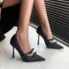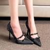 Internet celebrity one-word buckle belt pointed black single shoes women's low-top foreign style retro British style high heels