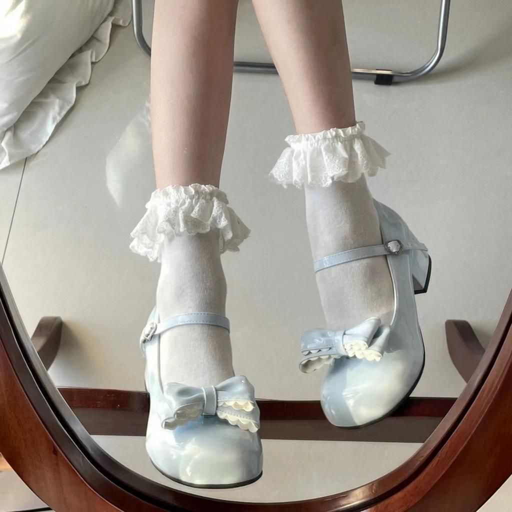 Cute and elegant princess style lolita shoes round head bow lo shoes daily middle heel Mary Jane shoes