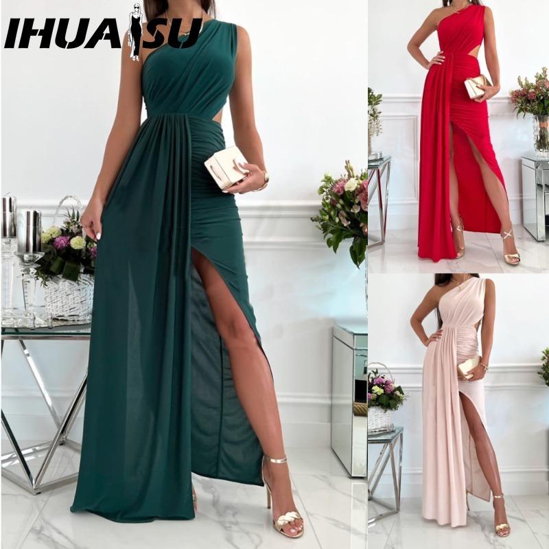 IHUASU Kadın Modası Yaz İlkbahar Düz Renk Baskı Kolsuz Günlük Elbiseler