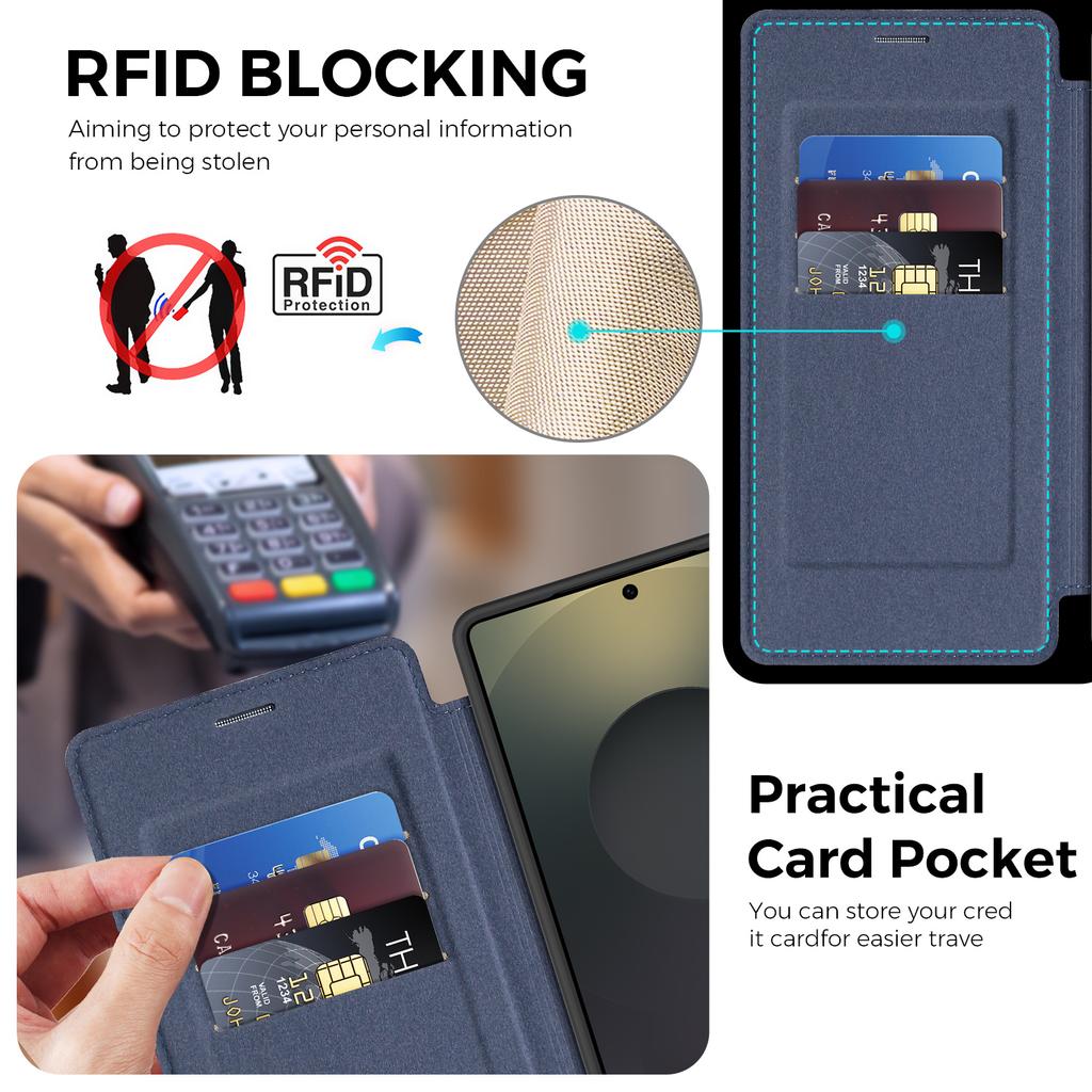 For Samsung Galaxy S25 Ultra Magnetic Case RFID Blocking Leather Wallet Cover with Rotating Ring Kickstand