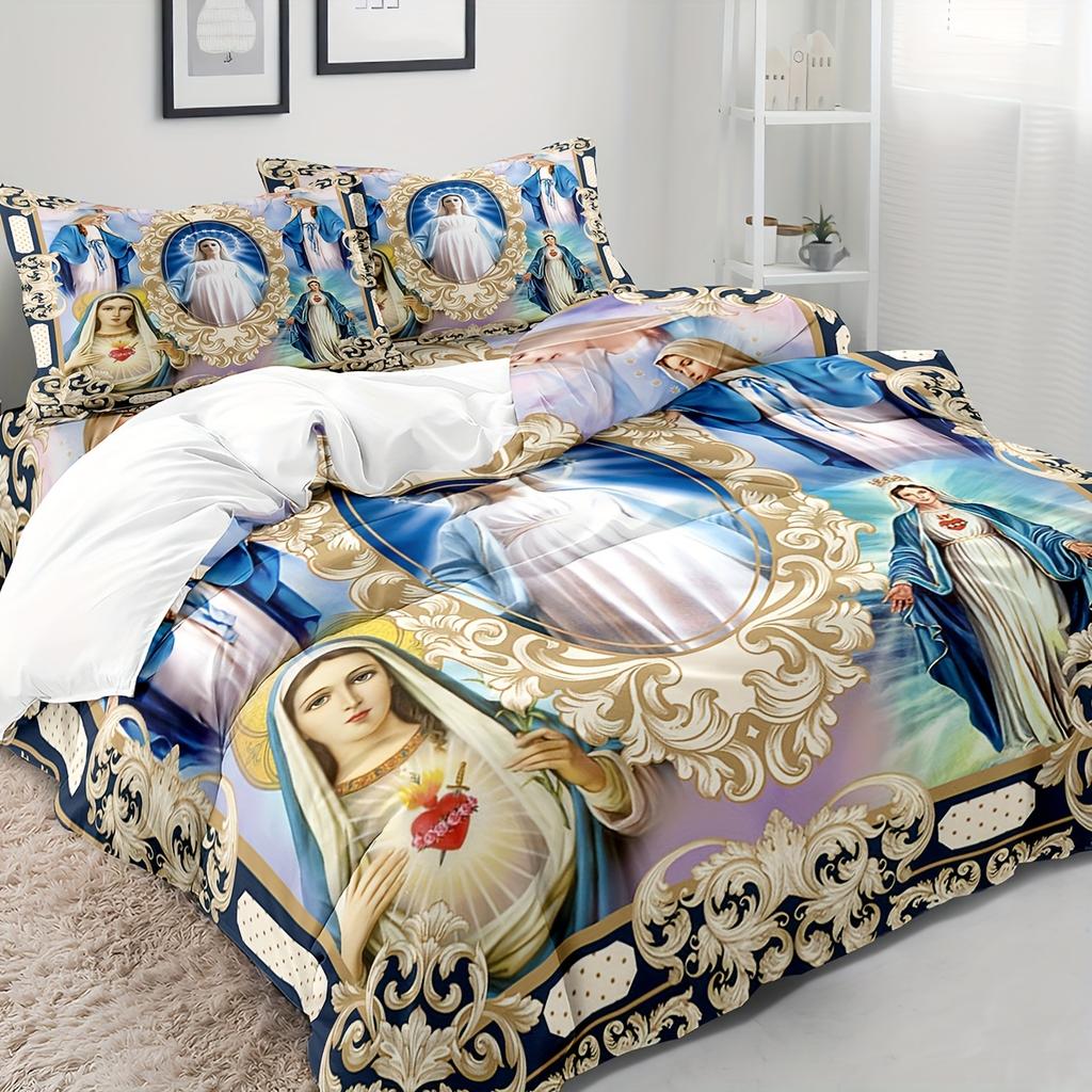3Pcs Jesus Virgin Mary Duvet Cover Set (1*Duvet Cover + 2*Pillowcases Without Core) 3D Digital Print Bedding Set