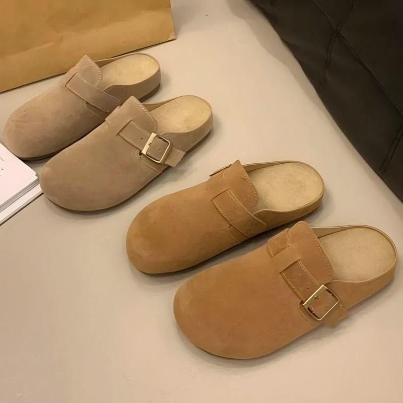 Half tray femininity autumn round head Birkenstocks versatile ugly cute bag head half slippers casual one pedal