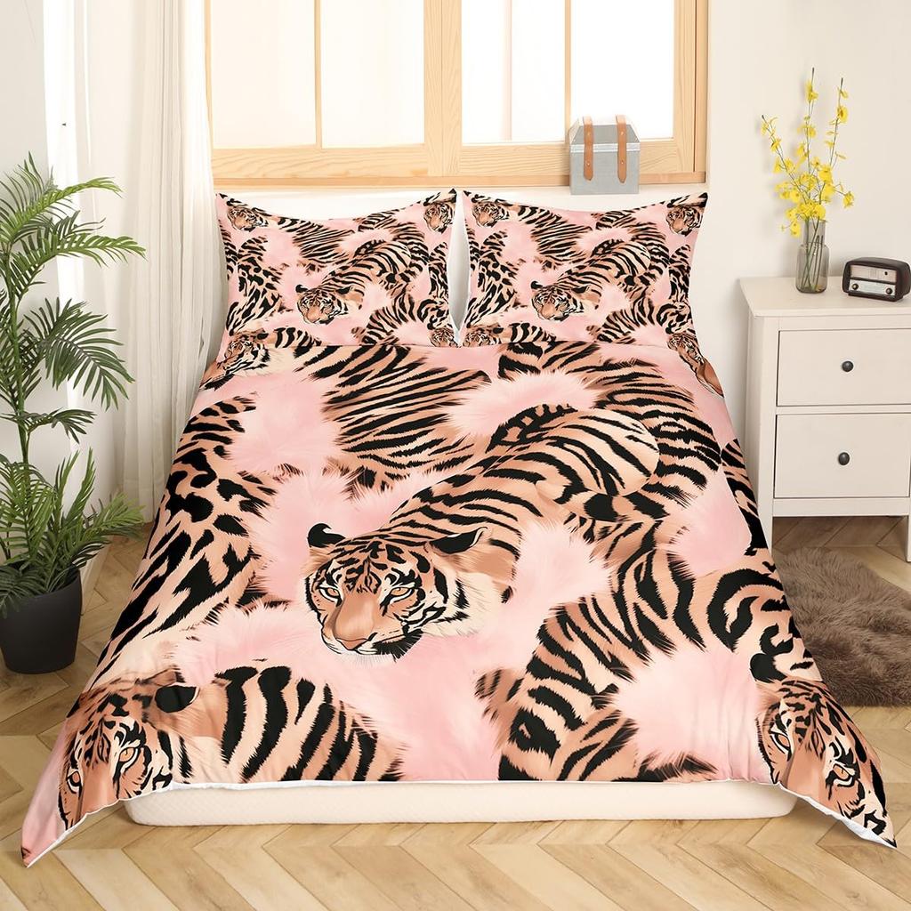 Tiger Duvet Cover Set For Teens Queen King Size Lightweight Quilt Covers Wildlife Pattern Bedding Set Bedroom Decor No Comforter