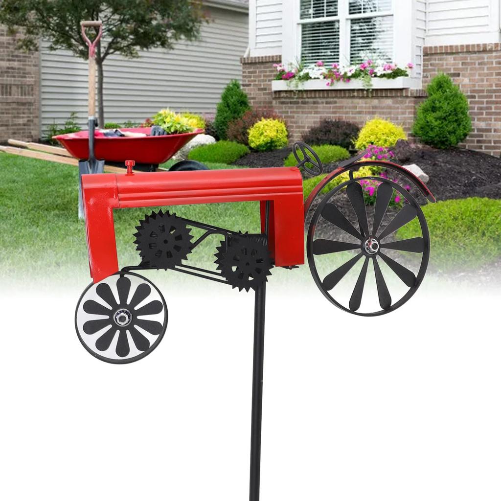 Tractor Wind Spinner Vintage Turning Wheels Metal Outdoor Stake Windmill Decoration For Flower Bed Lawn Garden Red