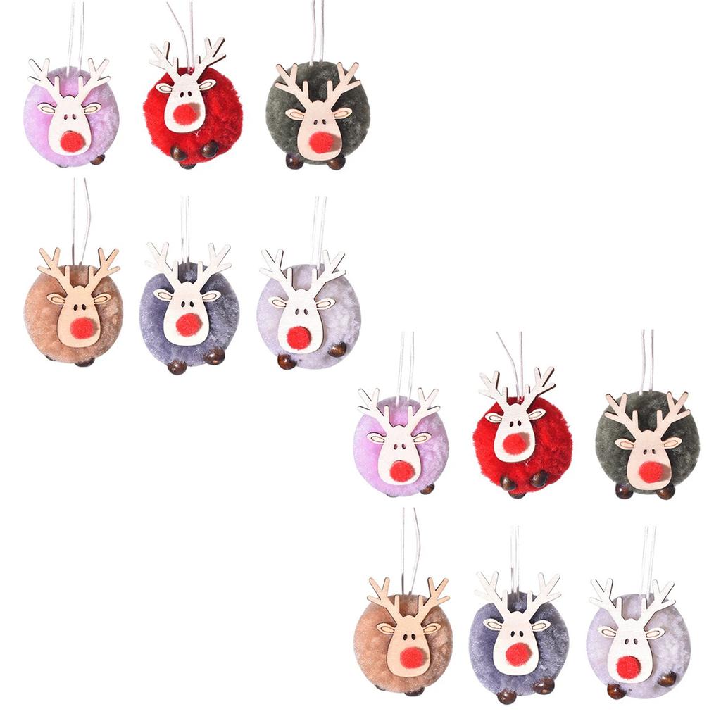 12pcs Lamb Velvet Ball Christmas Elk Pendant Bobbles Christmas Tree Pendants Xmas Hanging Decorations