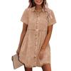 Kadın Kot Gömlek Elbiseler Kısa Kollu Düğmeli Yaka Jean Elbise Tek Düğmeli Günlük Üst Bol Fırfırlı Kenar Kadın Elbiseleri