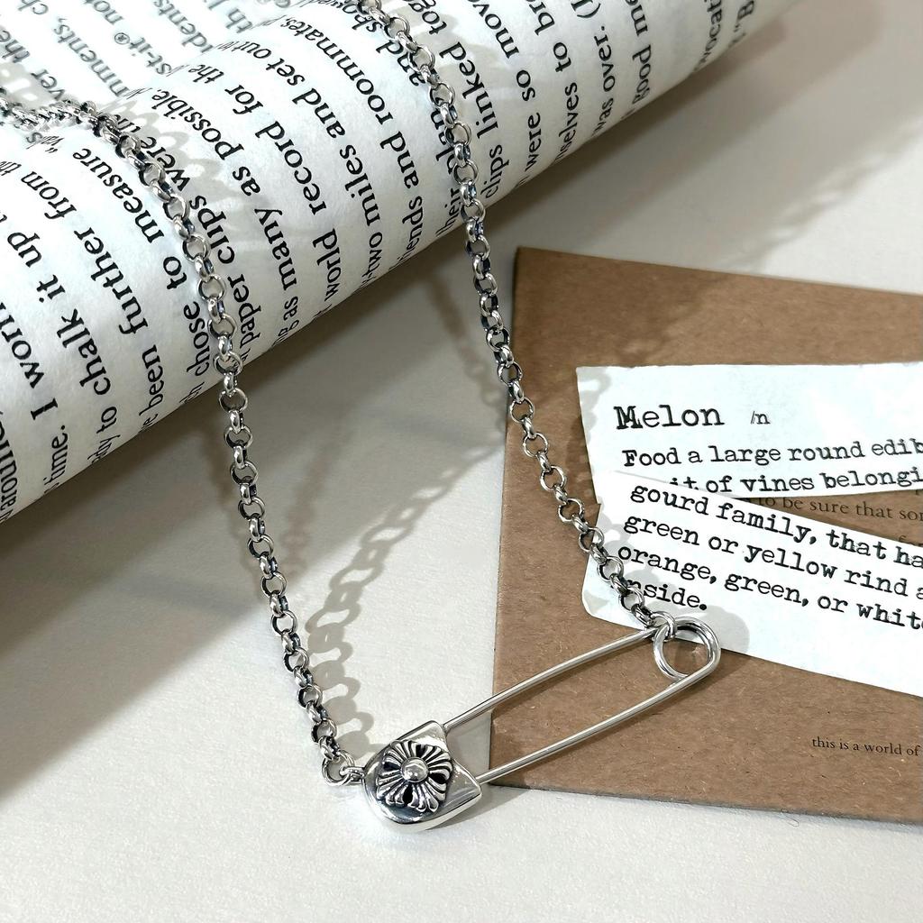 Sterling Silver Cross Flower Brooch Necklace, Unisex Trendy O-Shaped Sweater Chain with Universal Clasp