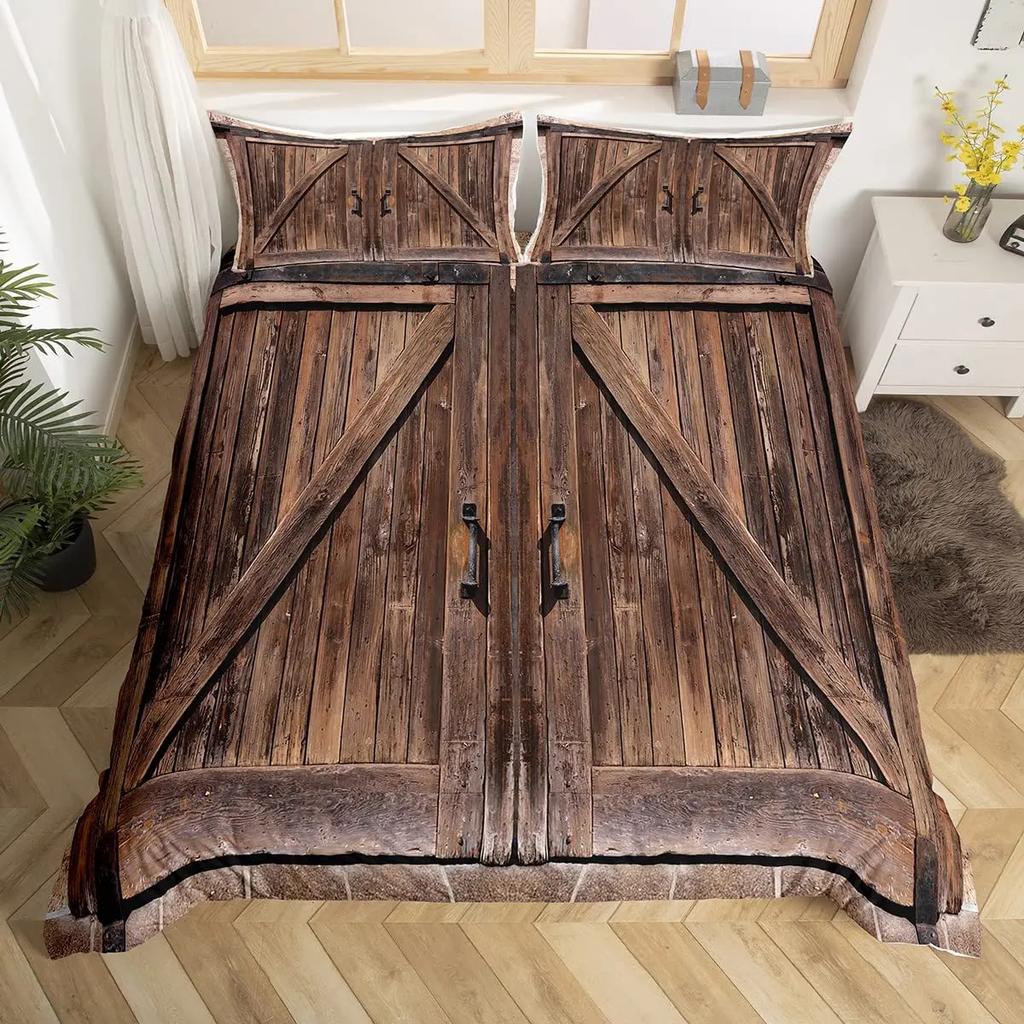 Rustic Wooden Barn Duvet Cover Set Wood Rustic Bedding Set Full King SizeFarm Farmhouse Comforter CoverPlank Wall Quilt Cover
