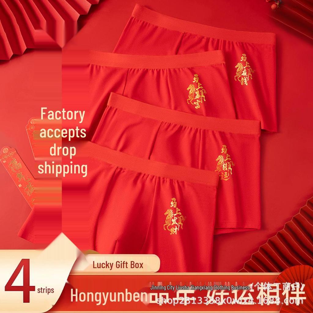 2026 Year of the Tiger Red Men's Boxer Briefs - 4-Piece Gift Set for Wealth & Marriage
