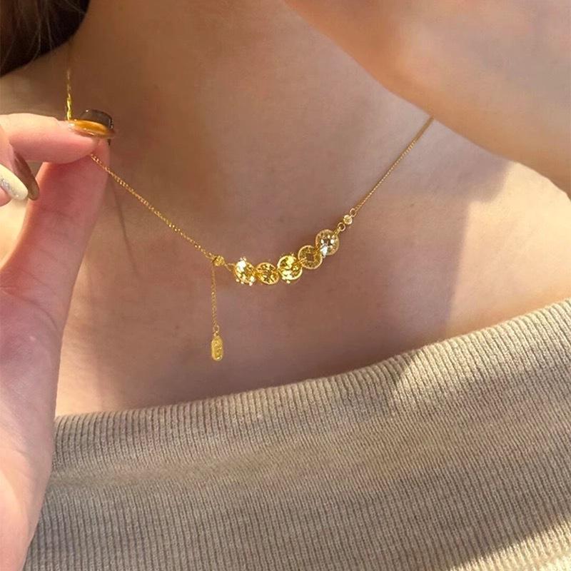 Zarif Retro Kırık Buz Beş İmparator Madeni Para Kolye: Zarif, Parlak, Çok Yönlü Köprücük Kemiği Zinciri