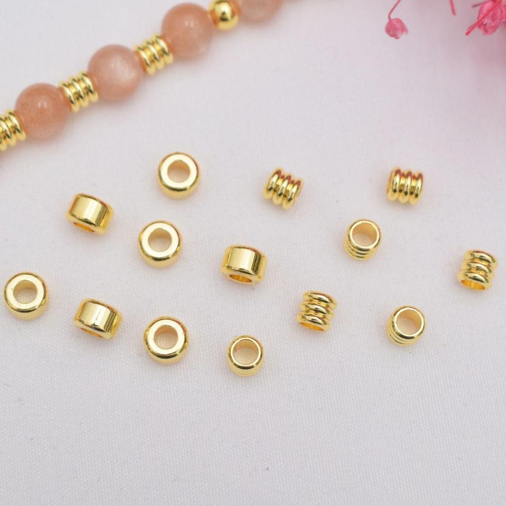 14K Gold Plated Colorfast Smooth Surface Barrel Spacer Beads for DIY Handmade Bracelets & Necklaces