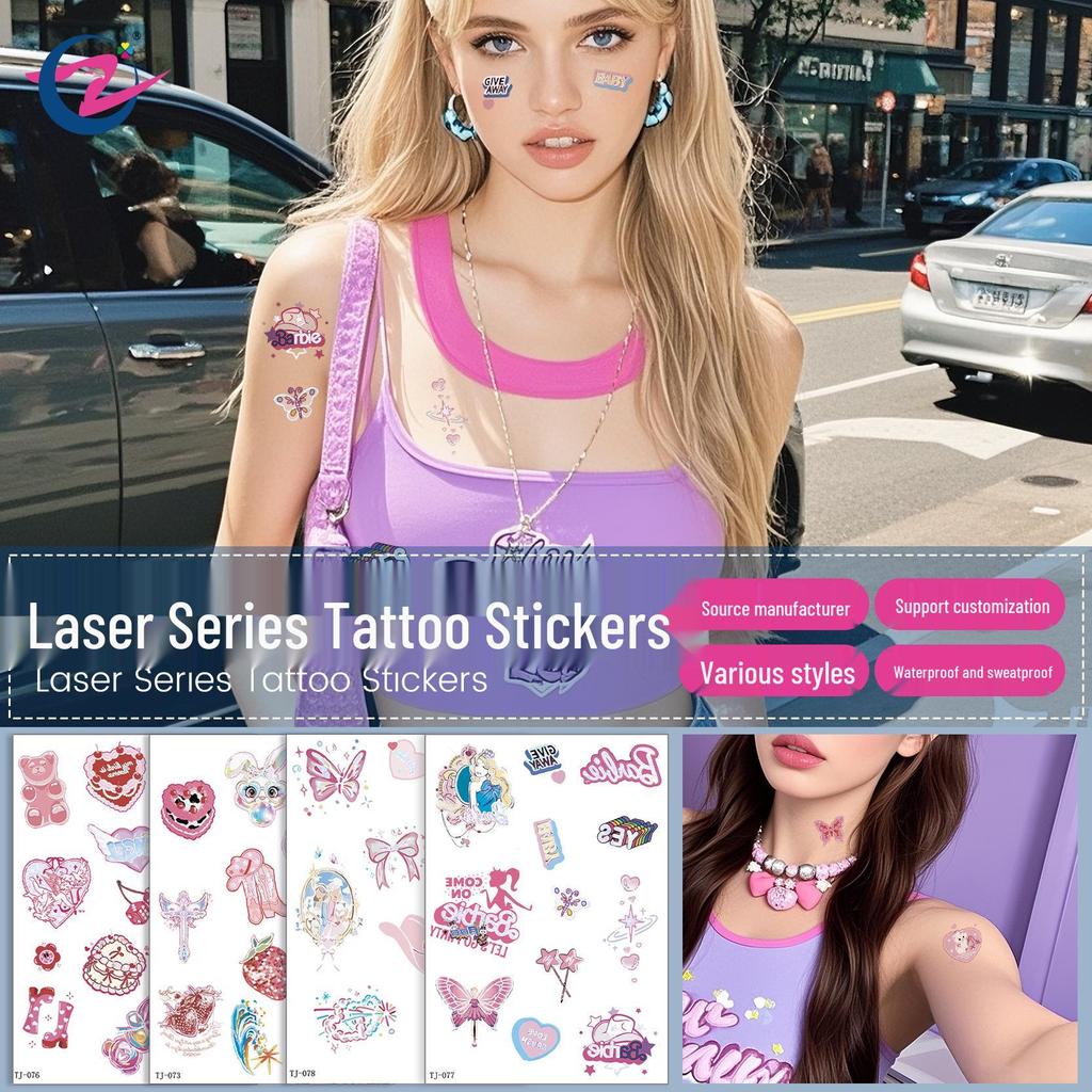 Pink Barbie Metallic Laser Tattoo Stickers - Trendy Summer Party Cool & Sweet Style