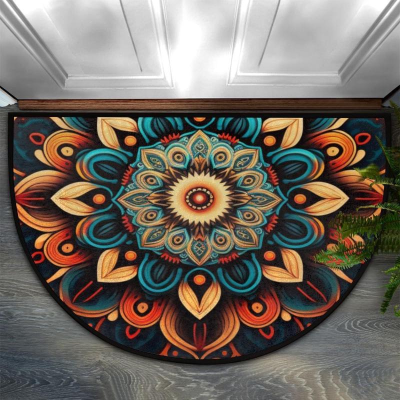 Bohemian Floral Retro Style Semi-Circular Entrance Mat