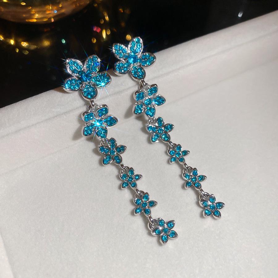 Silver Needle Cubic Zirconia Flower Tassel Earrings for Women: Exquisite, Elegant, and Fashionable Ear Studs with a Light Luxury Feel