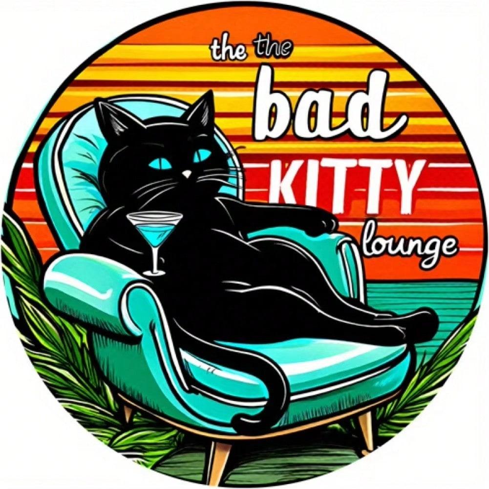 Vintage Black Cat Cartoon Metal Wall Sign 8x8 Inch Retro Home Decor