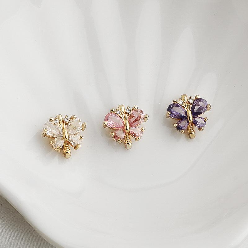 14K Gold Plated Zircon Butterfly Three-Row Spacer Beads Pearl Necklace DIY Jewelry Accessory