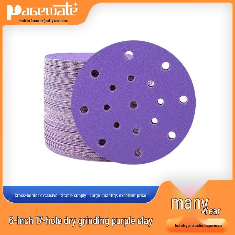 Purple 17-Hole Self-Adhesive Velvet Sandpaper for Auto Polishing, 6-Inch