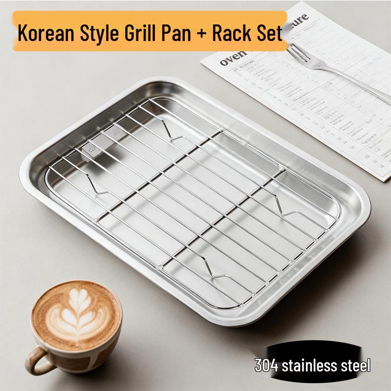 304 Stainless Steel Rectangular Grill and Baking Pan Set with Oil Draining Rack