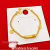 Lucky Goddess Gold-Color Ethnic Bracelet with Engraved Barrel Beads and Tibetan Rope.