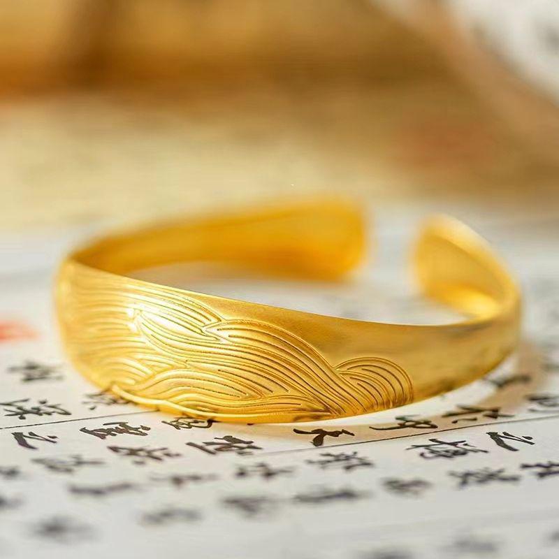Elegant Vietnamese Sand Gold Pearl Nine-Tailed Fox Openable Bangle Luxury Bracelet