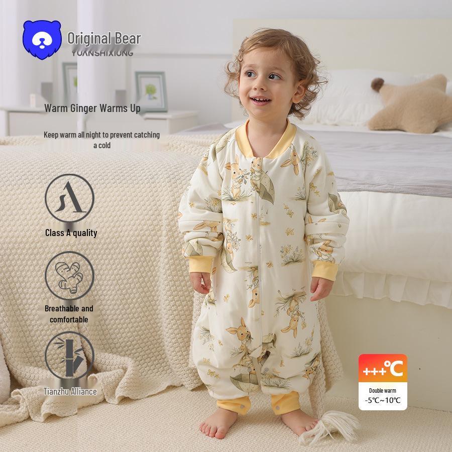 Keep your little one cozy and comfortable during the chilly months with this baby winter quilted sleeping bag. Made from a blend of premium bamboo and cotton materials, it offers a soft, breathable, and warm sleeping experience. The sleeping bag features a vibrant ginger color, adding a cheerful touch to bedtime. Designed with footed bottoms, it ensures your infant or toddler stays snug and secure, allowing for restful sleep all night long. This winter essential is perfect for keeping your child warm and happy.