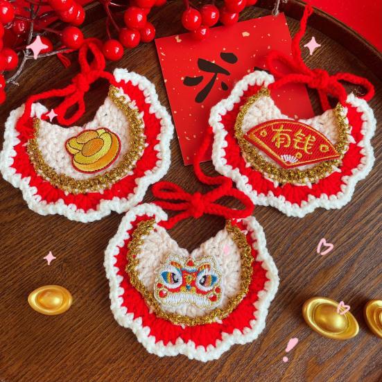 Tığ işi Evcil Hayvan Önlüğü Çin Yeni Yılı Kedi Önlüğü Kırmızı Bereket Evcil Hayvan Tasması Kediler ve Küçük Köpekler İçin Şenlikli Giydirme Aksesuarı